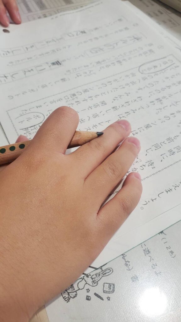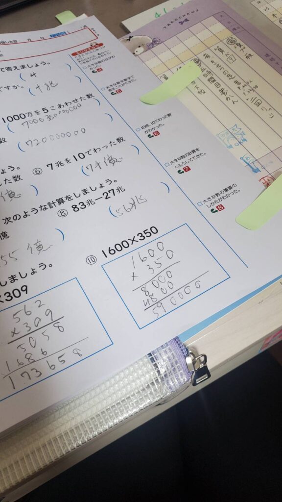 - こどもノート書く/本日の学習課題の準備/ワーク等の採点