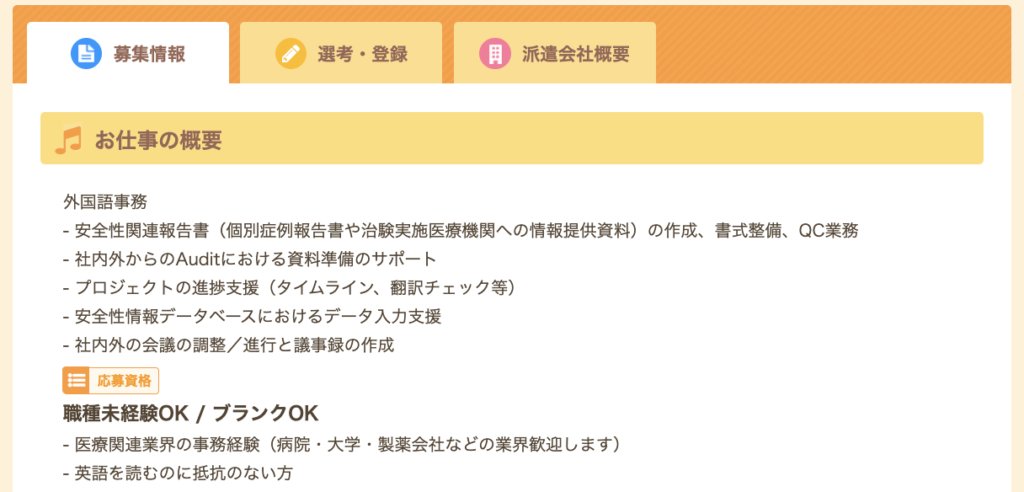 医薬品の安全性関連のお仕事(派遣)